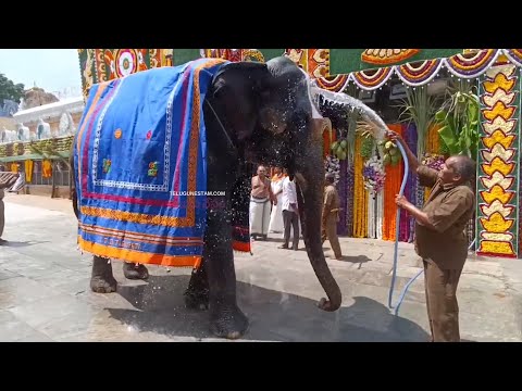 Elephant Taking Shower Infront Of Tirumala Sri Venkateswara Swamy Temple